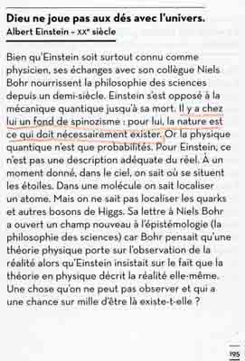 Les notions philosophiques & scientifiques voisinent souvent, comme par exemple dans cet ouvrage où une citation d'A. Einstein est éclairée en une (petite) page: